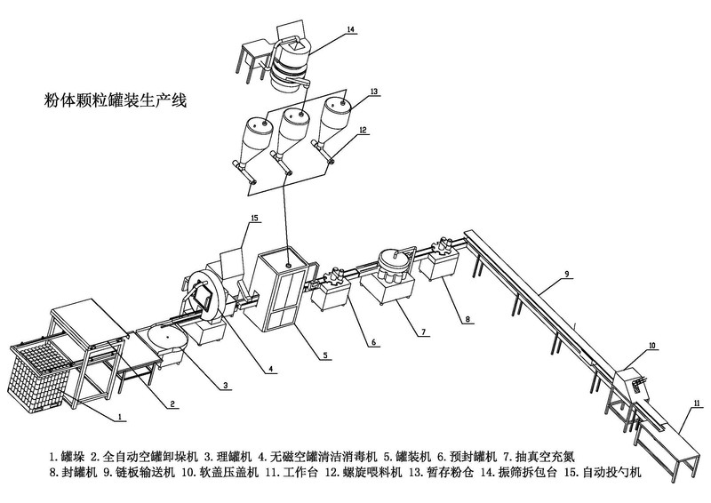 1.本奶粉抽真空充氮聽裝生產線是按照GMP聽裝流程配置,整個生產過程自動化程度高,符合中國GMP衛生標準;